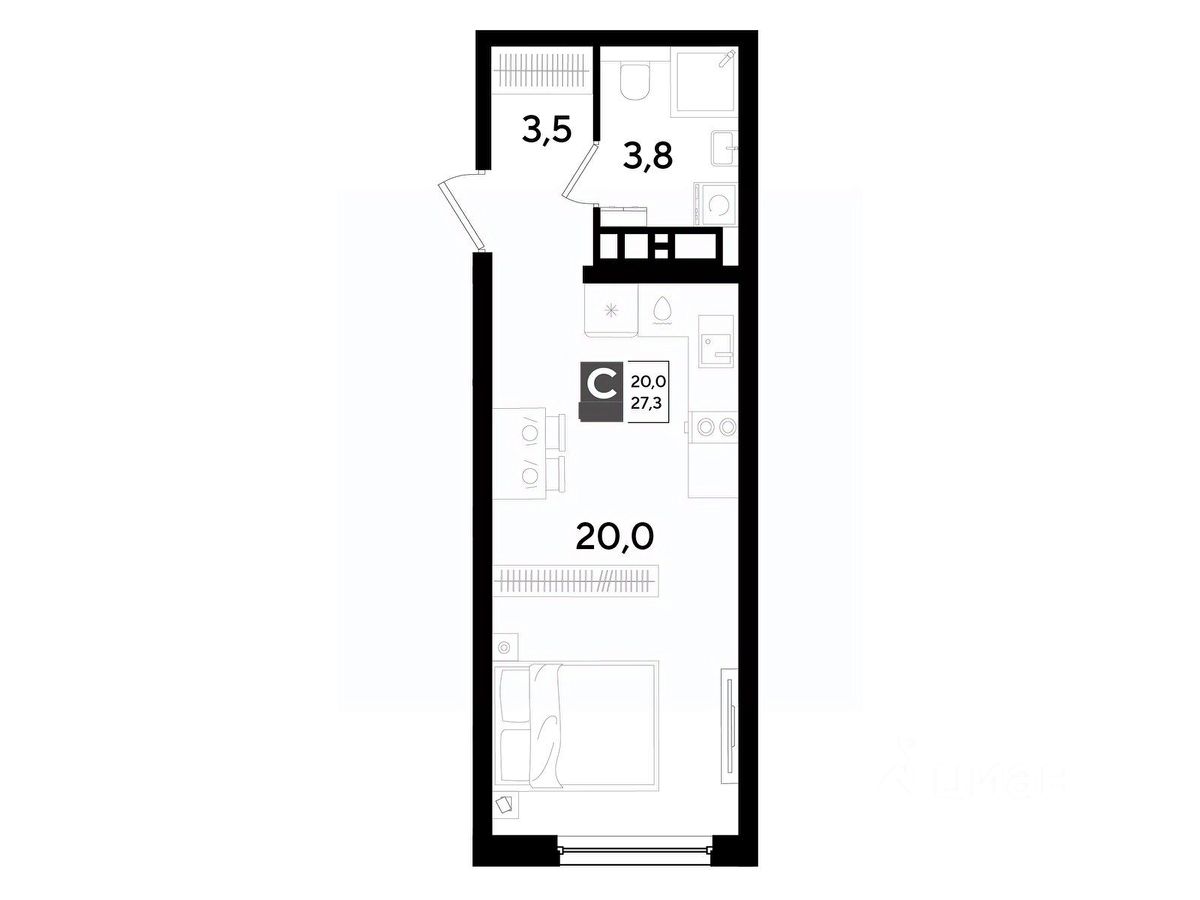 В продаже квартира-студия от застройщика! Мкр. "DOGMA PARK" г. Краснодар, Литер 35 Срок сдачи: 4 кв. 2027, общей площадью 27.3 кв.м., на 11 этаже.