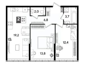 В продаже 2-комнатная квартира от застройщика! Мкр. "DOGMA PARK" г. Краснодар, Литер 36 Срок сдачи: 4 кв. 2027, общей площадью 57.9 кв.м., на 2 этаже.