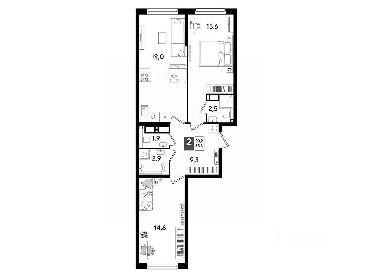 В продаже 2-комнатная квартира от застройщика! Мкр. "DOGMA PARK" г. Краснодар, Литер 36 Срок сдачи: 4 кв. 2027, общей площадью 65.8 кв.м., на 11 этаже.