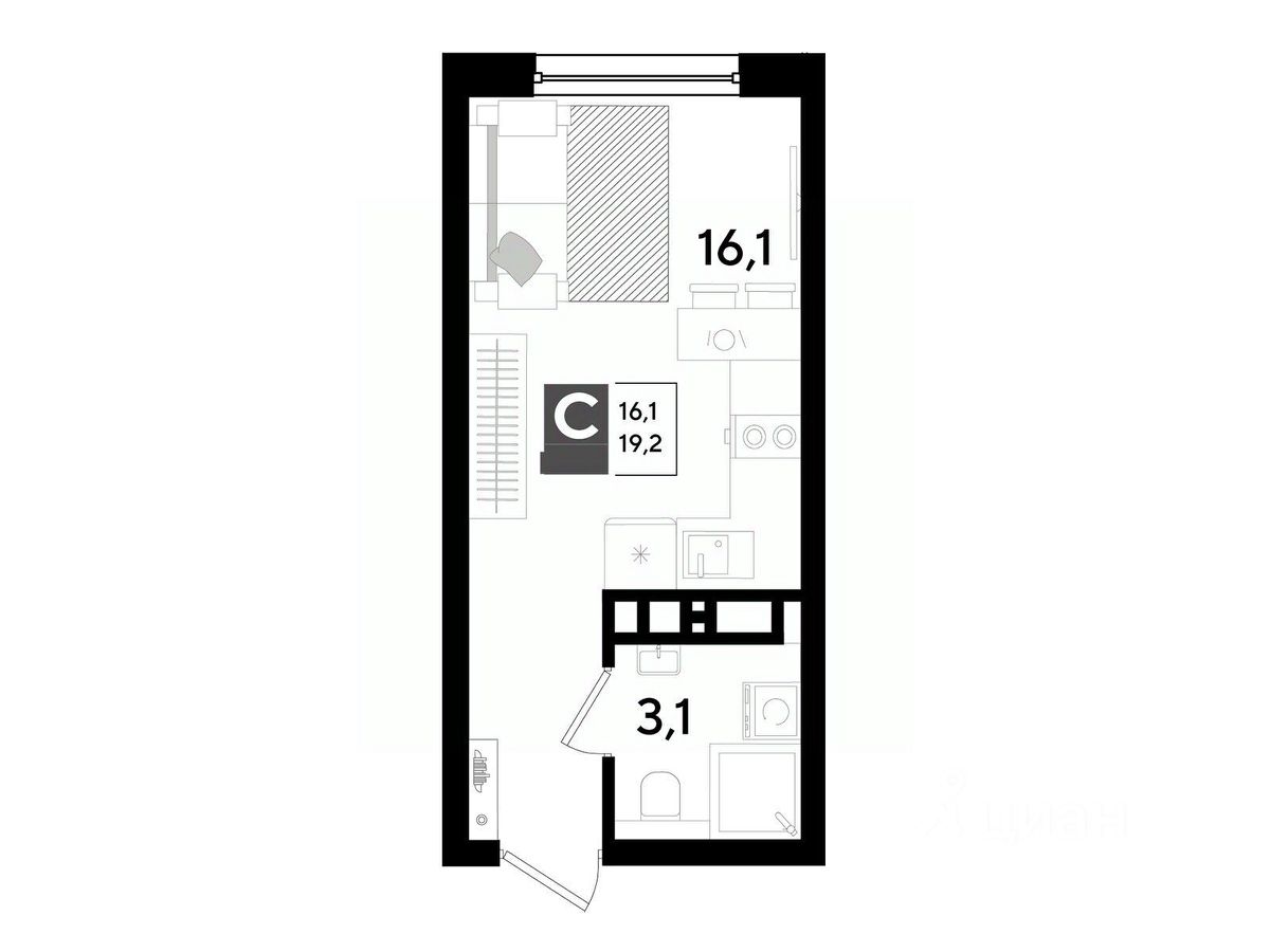 В продаже квартира-студия от застройщика! Мкр. "DOGMA PARK" г. Краснодар, Литер 34 Срок сдачи: 4 кв. 2027, общей площадью 19.2 кв.м., на 14 этаже.