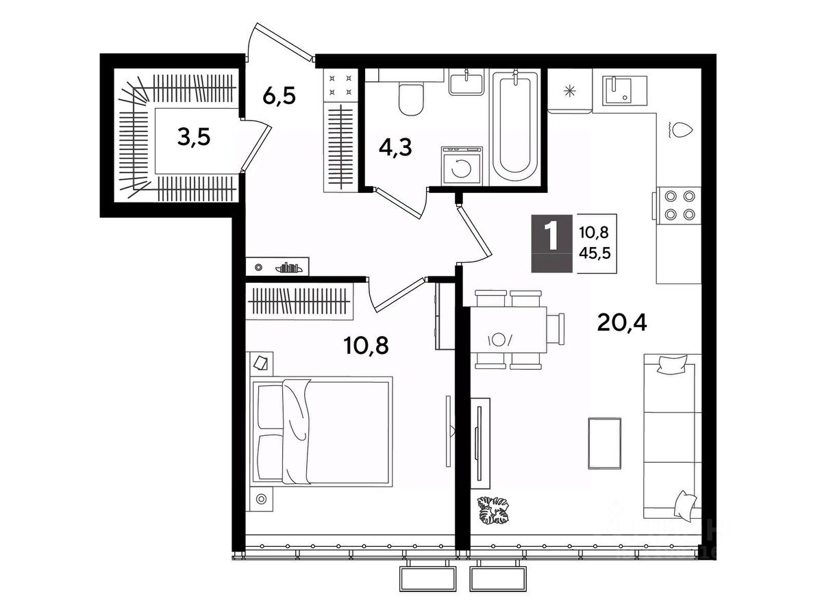 В продаже 1-комнатная квартира от застройщика! Мкр. "DOGMA PARK" г. Краснодар, Литер 34 Срок сдачи: 4 кв. 2027, общей площадью 45.5 кв.м., на 2 этаже.