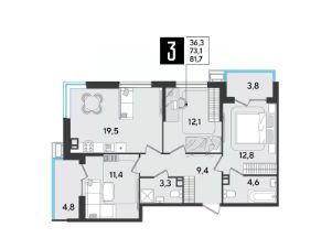 Срок сдачи: 2 кв. 2026, общей площадью 81.7 кв.м., на 9 этаже.