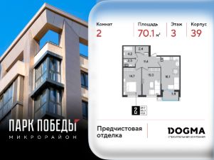 Срок сдачи: 3 кв. 2026, общей площадью 70.1 кв.м., на 3 этаже.