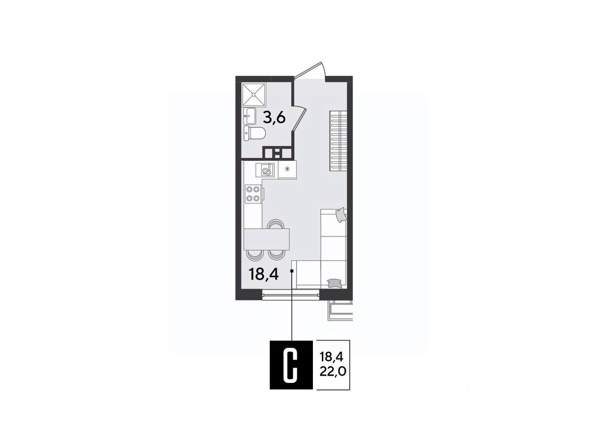 Срок сдачи: 2 кв. 2026, общей площадью 22 кв.м., на 6 этаже.