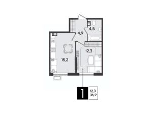 Срок сдачи: 2 кв. 2026, общей площадью 36.9 кв.м., на 3 этаже.