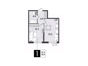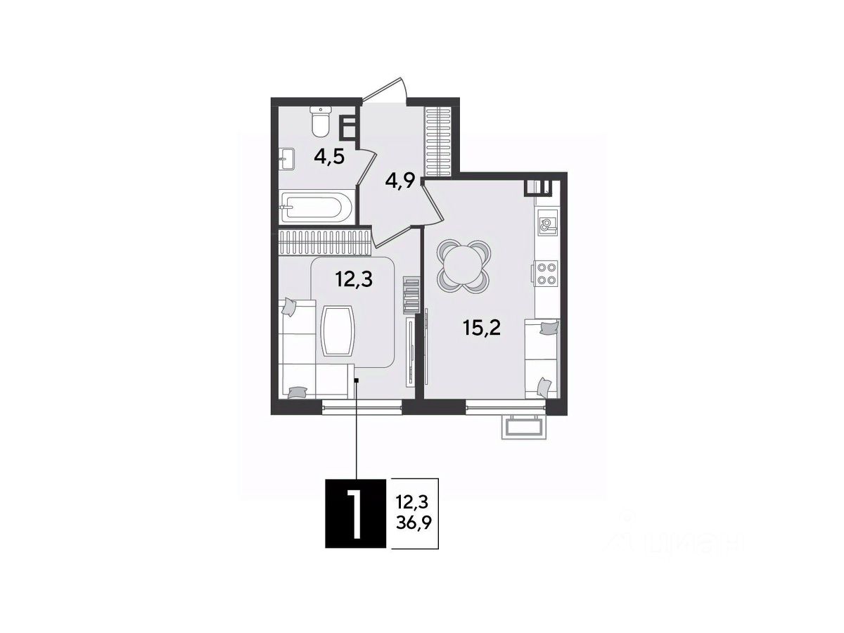Срок сдачи: 2 кв. 2026, общей площадью 36.9 кв.м., на 9 этаже.