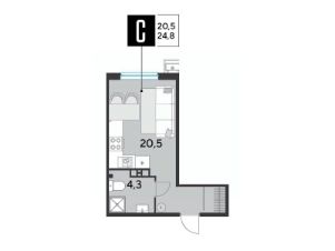 Срок сдачи: 2 кв. 2026, общей площадью 24.8 кв.м., на 3 этаже.
