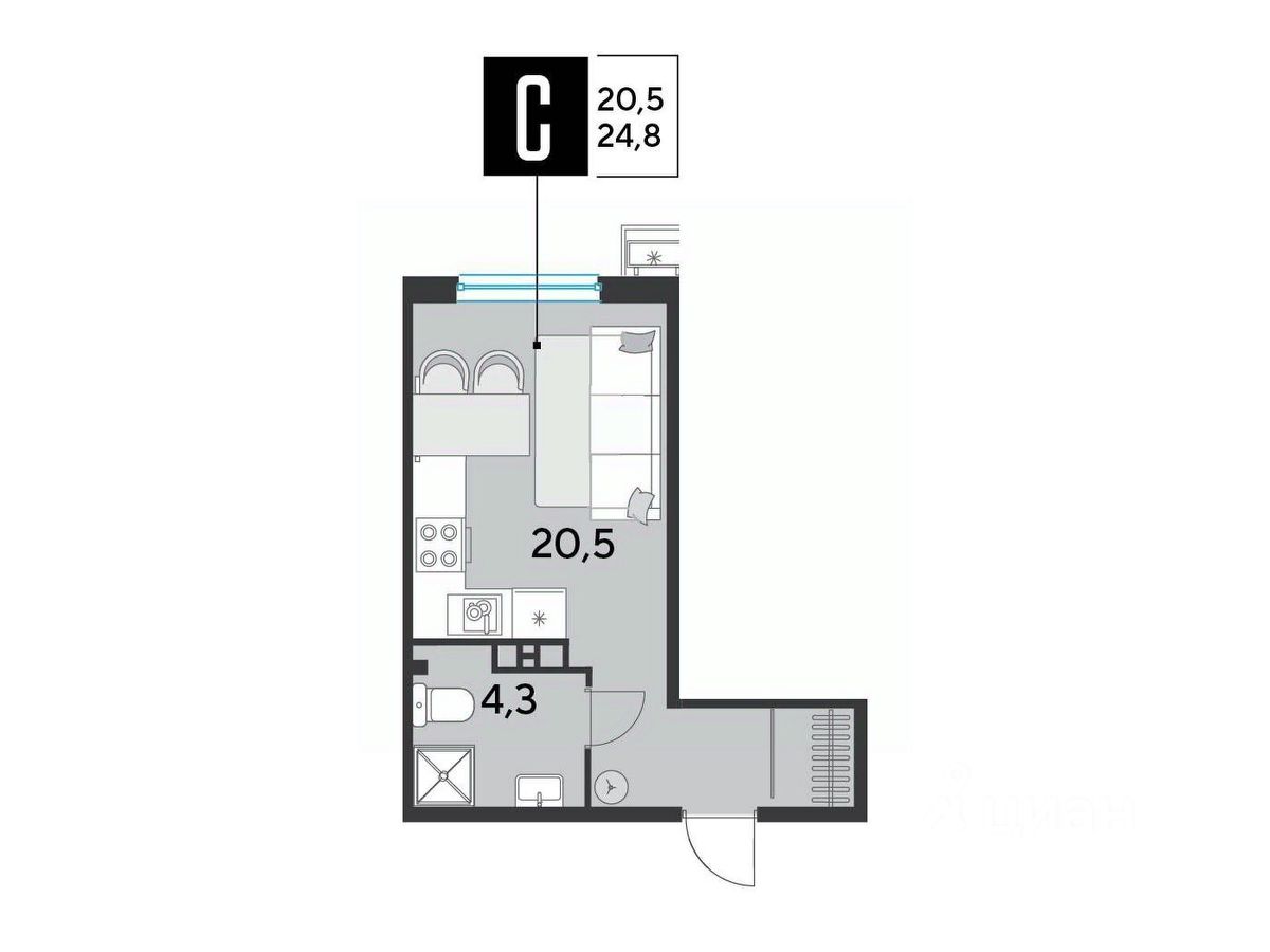 Срок сдачи: 2 кв. 2026, общей площадью 24.8 кв.м., на 9 этаже.