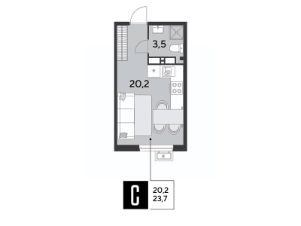 Срок сдачи: 2 кв. 2026, общей площадью 23.7 кв.м., на 15 этаже.