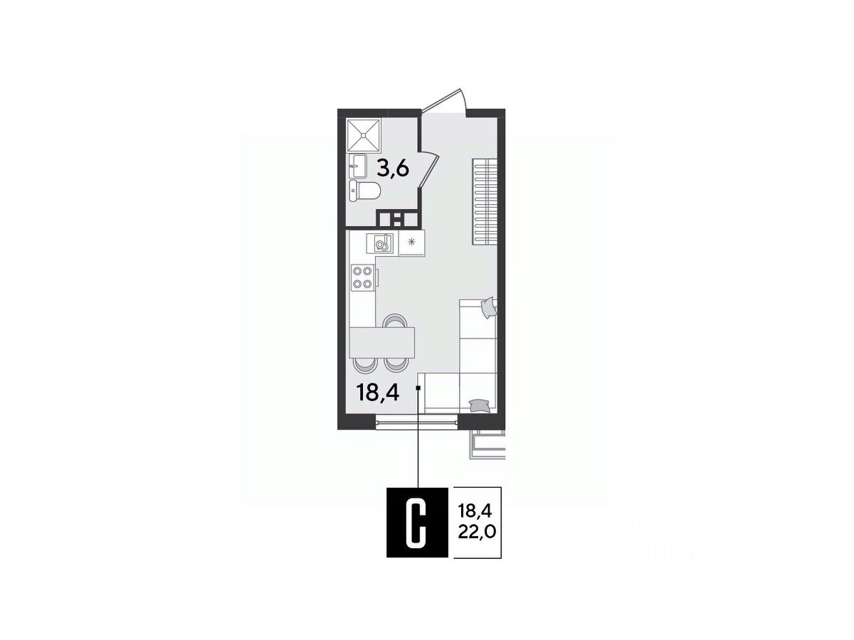 Срок сдачи: 2 кв. 2026, общей площадью 22 кв.м., на 3 этаже.