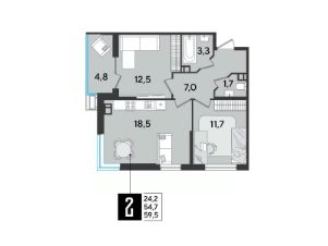 Срок сдачи: 2 кв. 2026, общей площадью 59.5 кв.м., на 9 этаже.