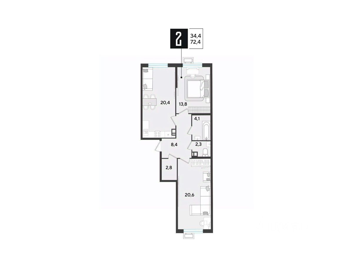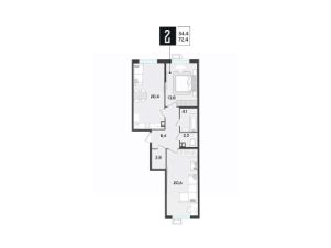 Срок сдачи: 2 кв. 2026, общей площадью 72.4 кв.м., на 3 этаже.