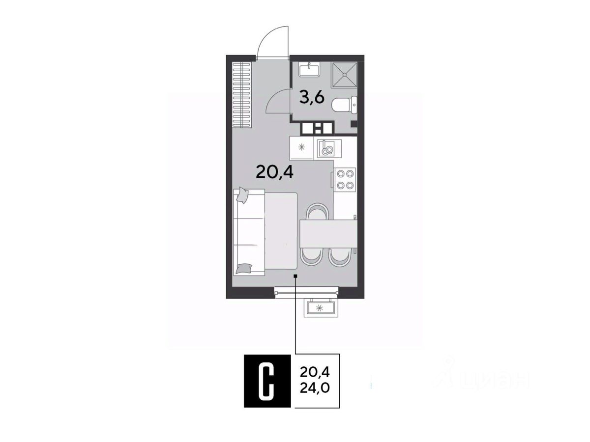 Срок сдачи: 2 кв. 2026, общей площадью 24 кв.м., на 7 этаже.