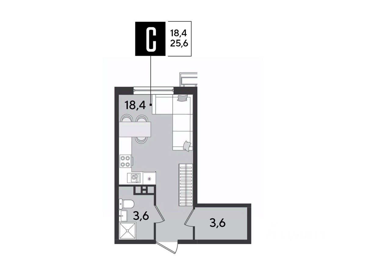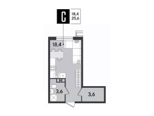 Срок сдачи: 2 кв. 2026, общей площадью 25.6 кв.м., на 3 этаже.