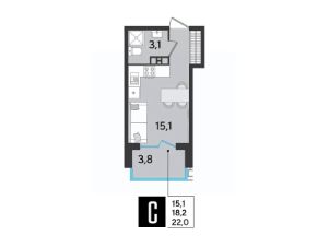 Срок сдачи: 2 кв. 2026, общей площадью 22 кв.м., на 3 этаже.