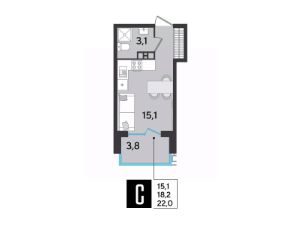 Срок сдачи: 2 кв. 2026, общей площадью 22 кв.м., на 9 этаже.