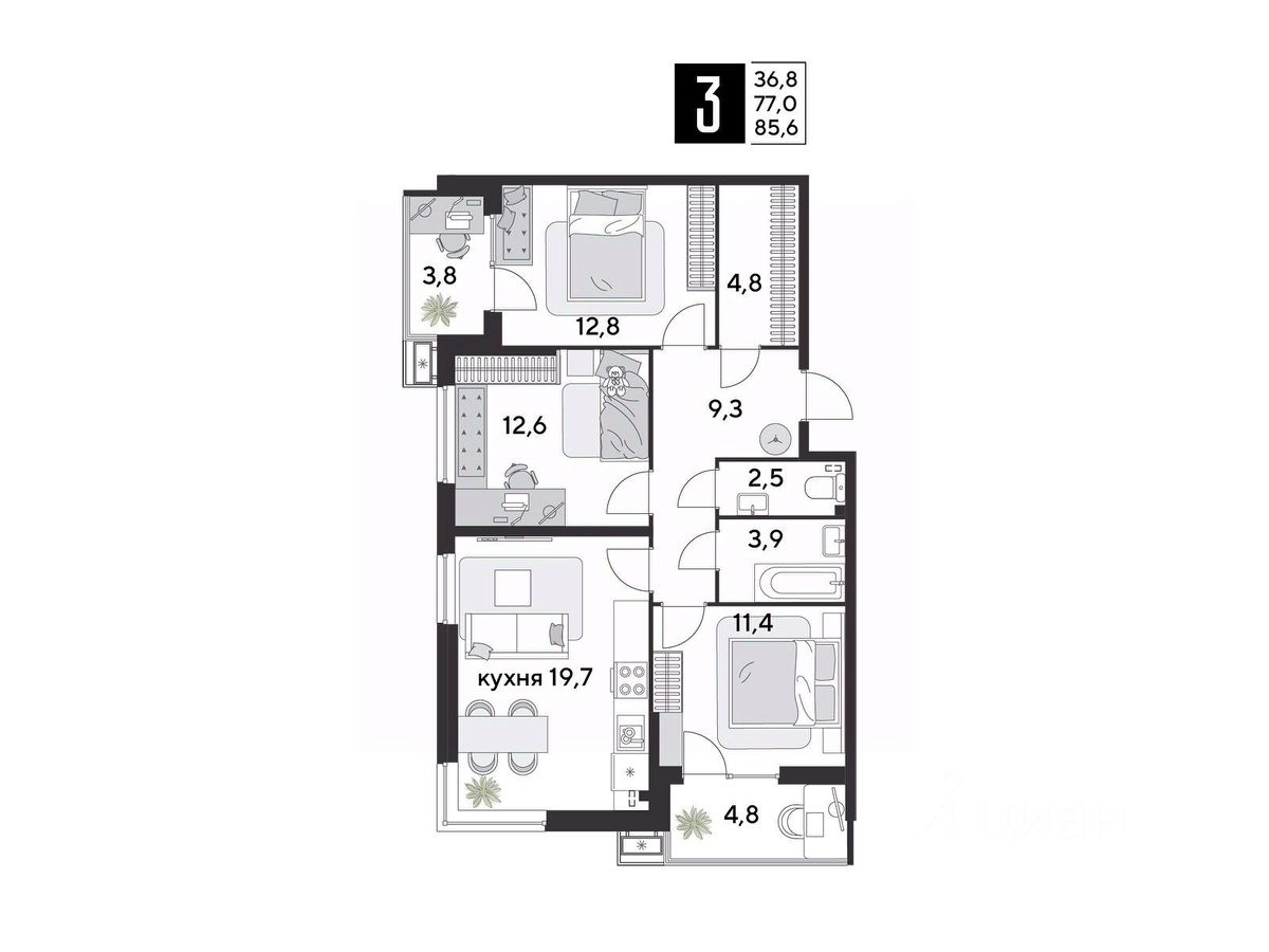 В продаже 3-комнатная квартира от застройщика! ЖК "Парк Победы 2", г. Краснодар, Литер 28