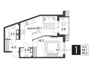 Срок сдачи: 1 кв. 2026, общей площадью 48.5 кв.м., на 13 этаже.