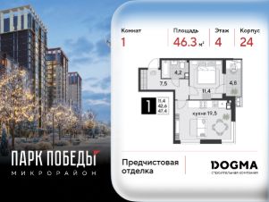 Срок сдачи: 1 кв. 2026, общей площадью 46.3 кв.м., на 4 этаже.