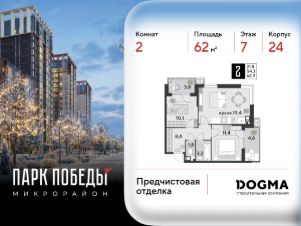 Срок сдачи: 1 кв. 2026, общей площадью 62 кв.м., на 7 этаже.