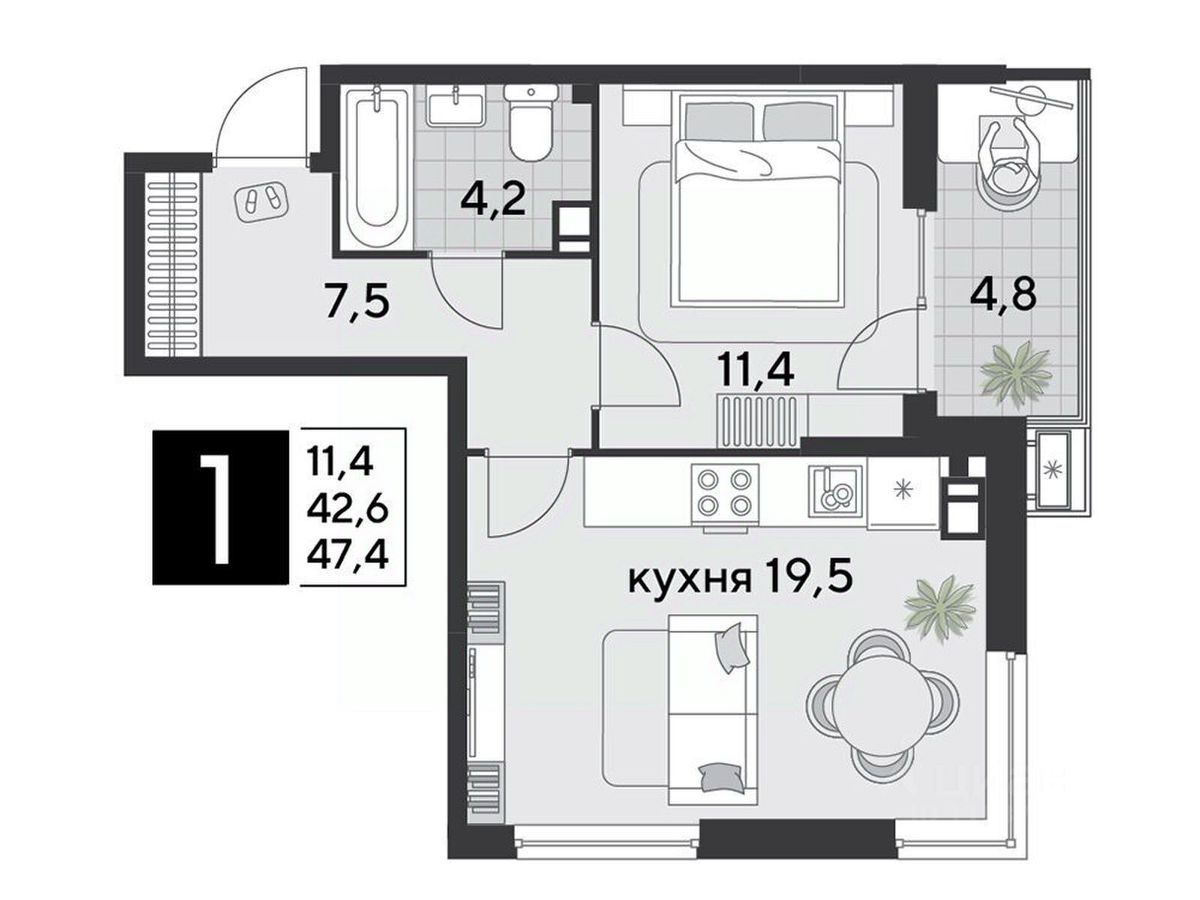 Срок сдачи: 1 кв. 2026, общей площадью 46 кв.м., на 9 этаже.