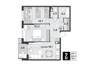 Срок сдачи: 1 кв. 2026, общей площадью 70.1 кв.м., на 9 этаже.