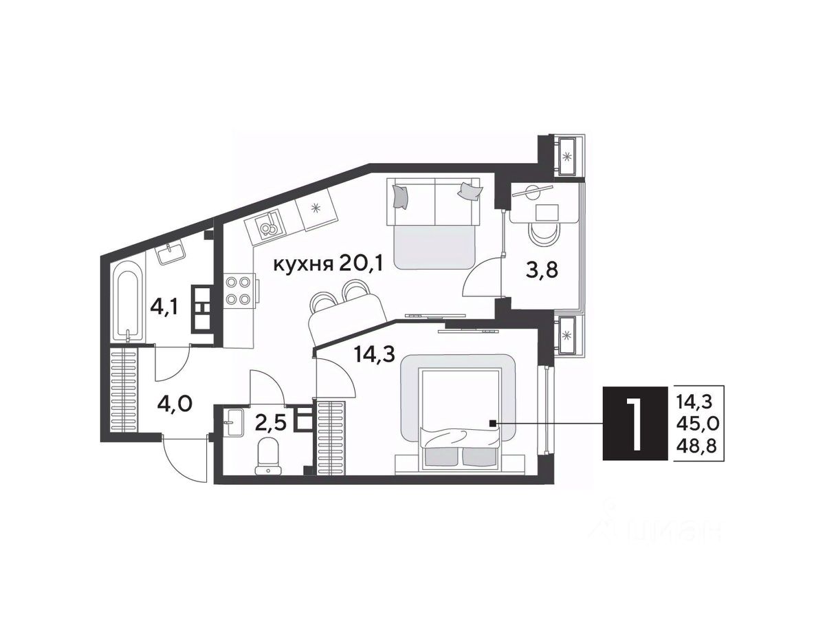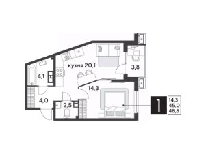 Срок сдачи: 1 кв. 2026, общей площадью 48.8 кв.м., на 8 этаже.