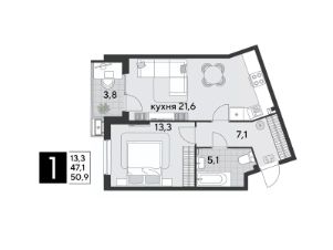 Срок сдачи: 1 кв. 2026, общей площадью 50.9 кв.м., на 2 этаже.