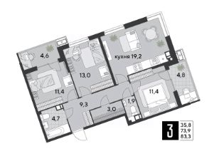 Срок сдачи: 1 кв. 2026, общей площадью 83.3 кв.м., на 6 этаже.