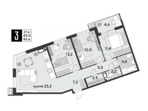 Срок сдачи: 1 кв. 2026, общей площадью 89.6 кв.м., на 14 этаже.