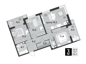 Срок сдачи: 1 кв. 2026, общей площадью 83.3 кв.м., на 3 этаже.