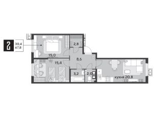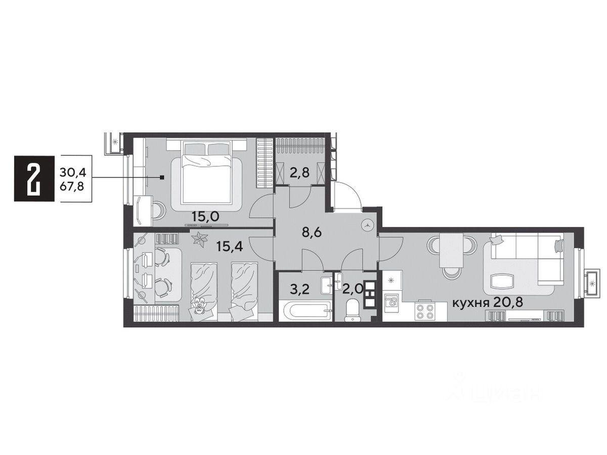 Срок сдачи: 1 кв. 2026, общей площадью 67.8 кв.м., на 4 этаже.