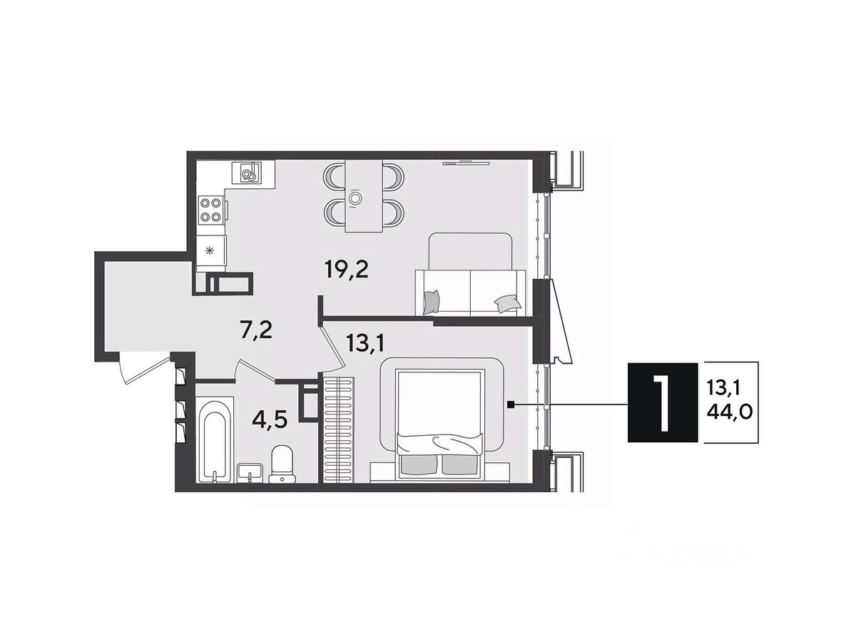 Срок сдачи: 1 кв. 2026, общей площадью 44 кв.м., на 11 этаже.