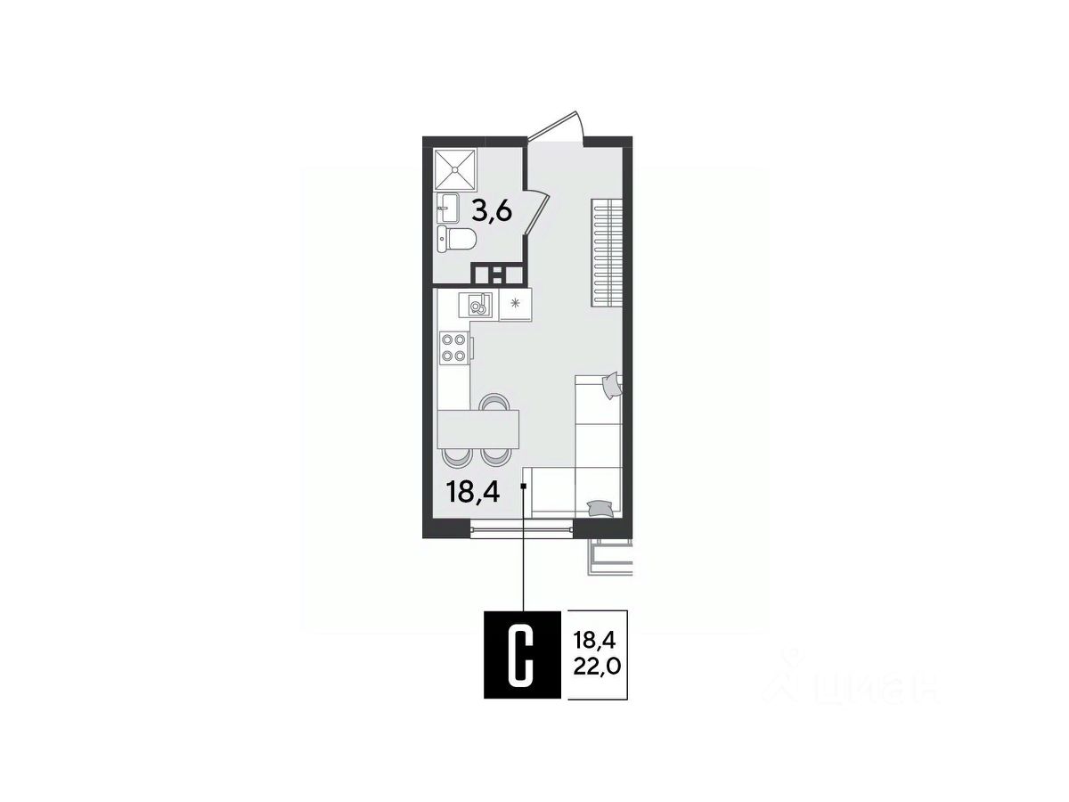 Срок сдачи: 2 кв. 2026, общей площадью 22 кв.м., на 8 этаже.