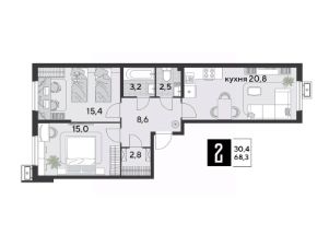Срок сдачи: 2 кв. 2026, общей площадью 68.3 кв.м., на 2 этаже.
