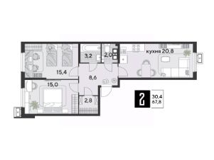 Срок сдачи: 2 кв. 2026, общей площадью 67.8 кв.м., на 6 этаже.