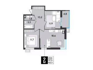 Срок сдачи: 2 кв. 2026, общей площадью 62.3 кв.м., на 9 этаже.
