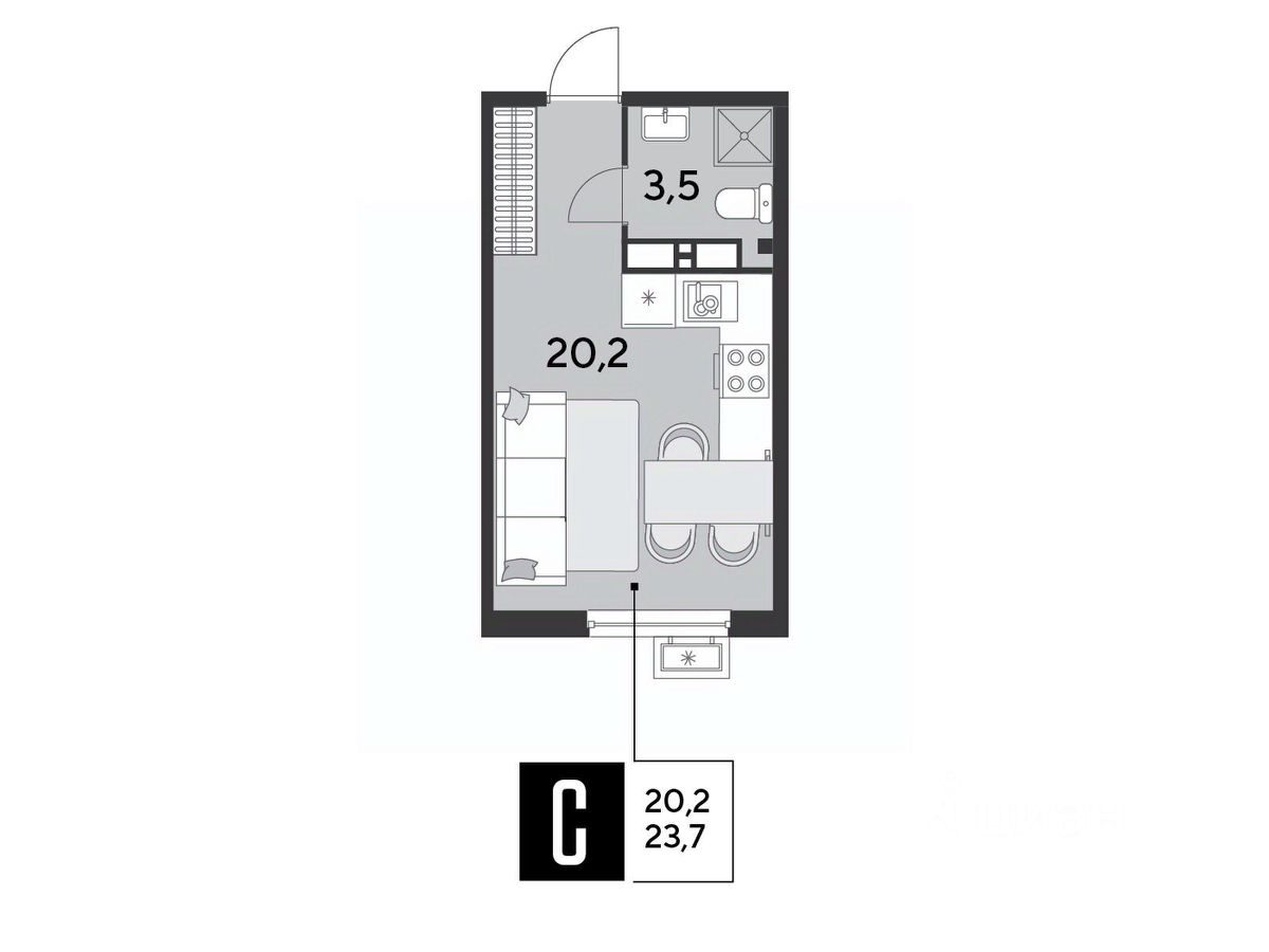 Срок сдачи: 2 кв. 2026, общей площадью 23.7 кв.м., на 14 этаже.