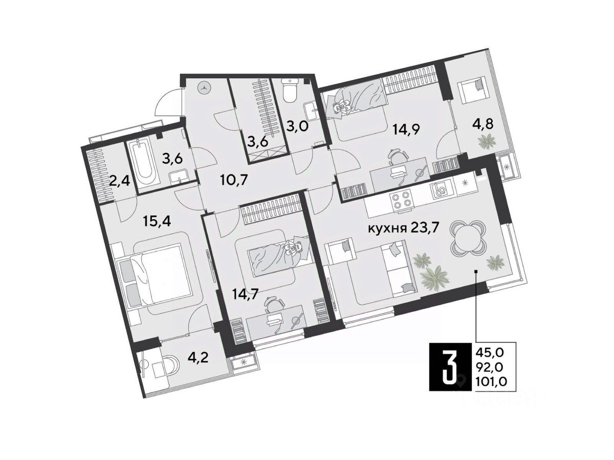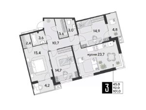 Срок сдачи: 2 кв. 2026, общей площадью 101 кв.м., на 2 этаже.