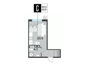 Срок сдачи: 2 кв. 2026, общей площадью 24.8 кв.м., на 8 этаже.