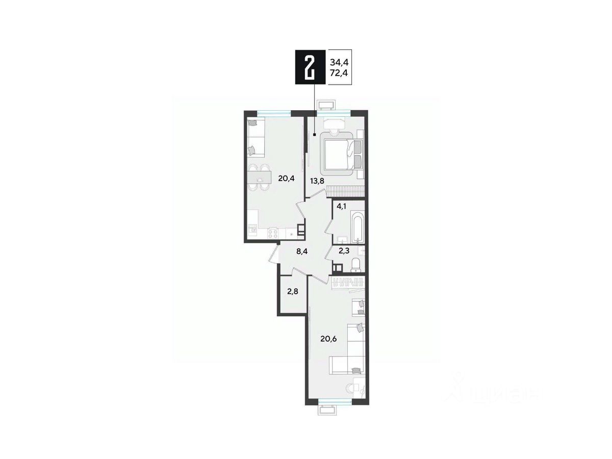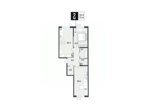 Срок сдачи: 2 кв. 2026, общей площадью 72.4 кв.м., на 8 этаже.