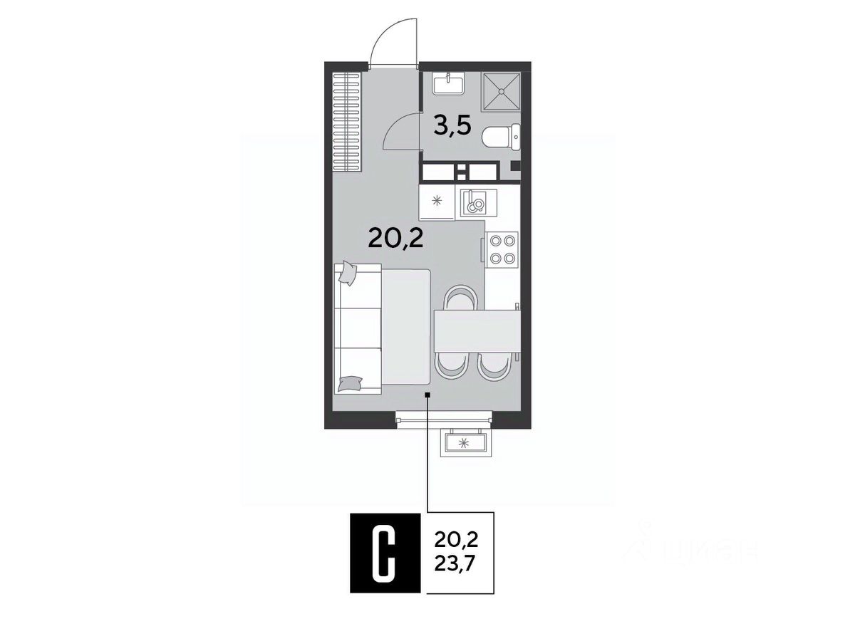 Срок сдачи: 2 кв. 2026, общей площадью 23.7 кв.м., на 15 этаже.