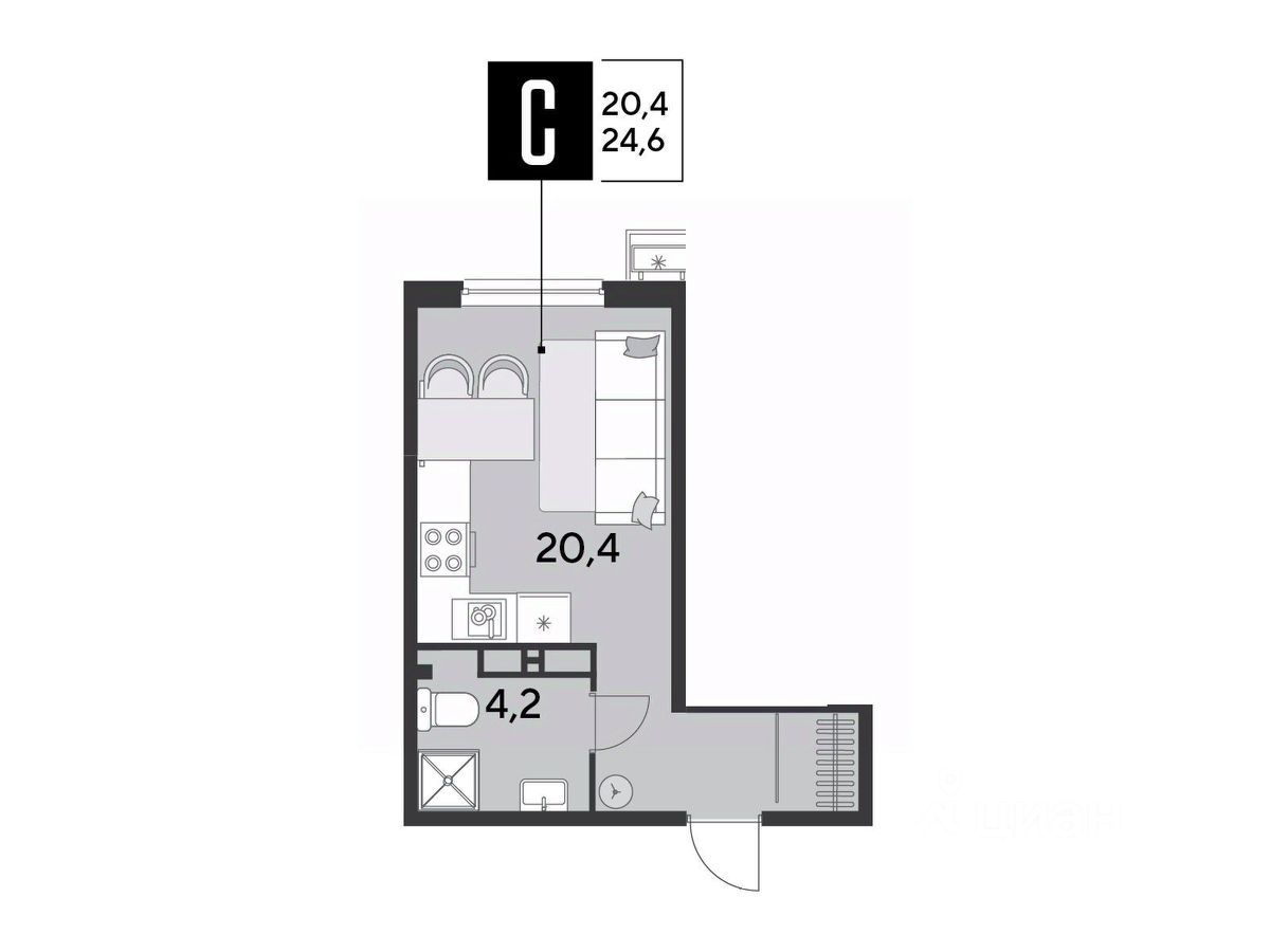 Срок сдачи: 2 кв. 2026, общей площадью 24.6 кв.м., на 16 этаже.