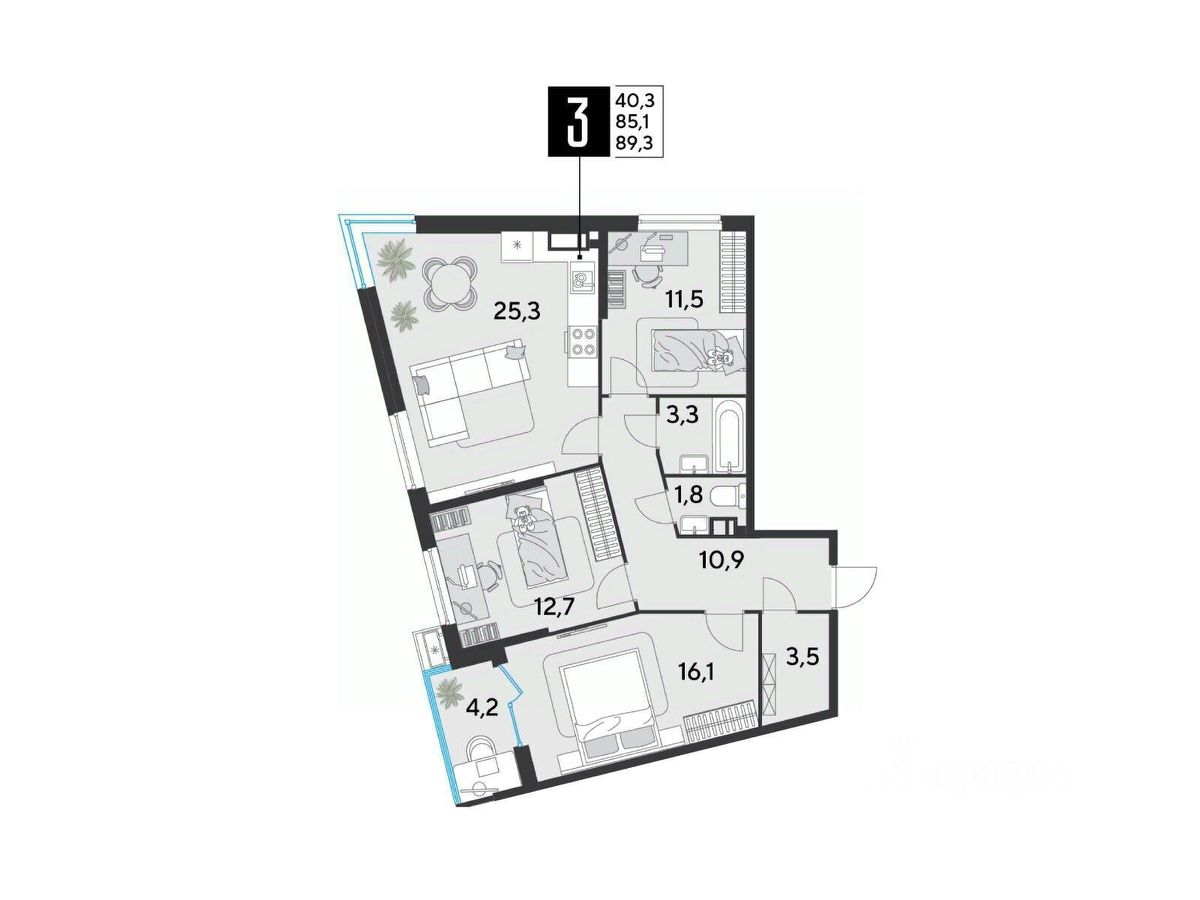 Срок сдачи: 2 кв. 2026, общей площадью 89.3 кв.м., на 17 этаже.