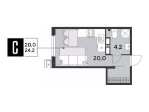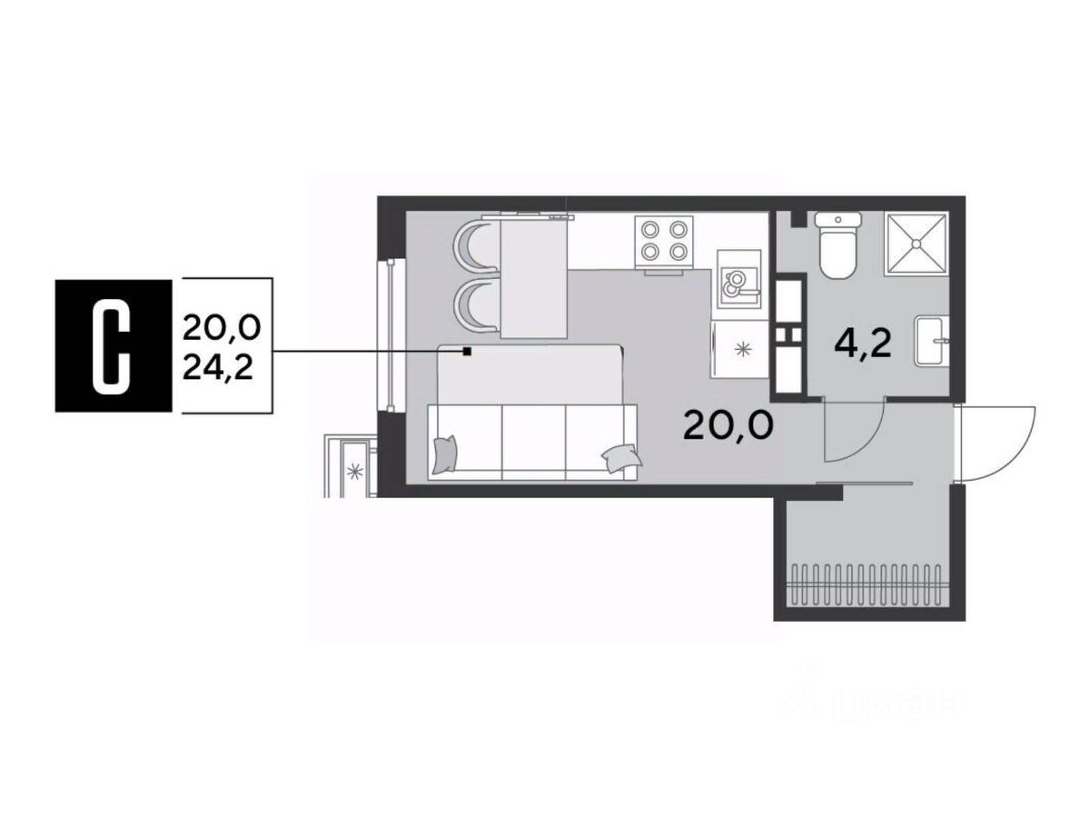 Срок сдачи: 2 кв. 2026, общей площадью 24.2 кв.м., на 18 этаже.