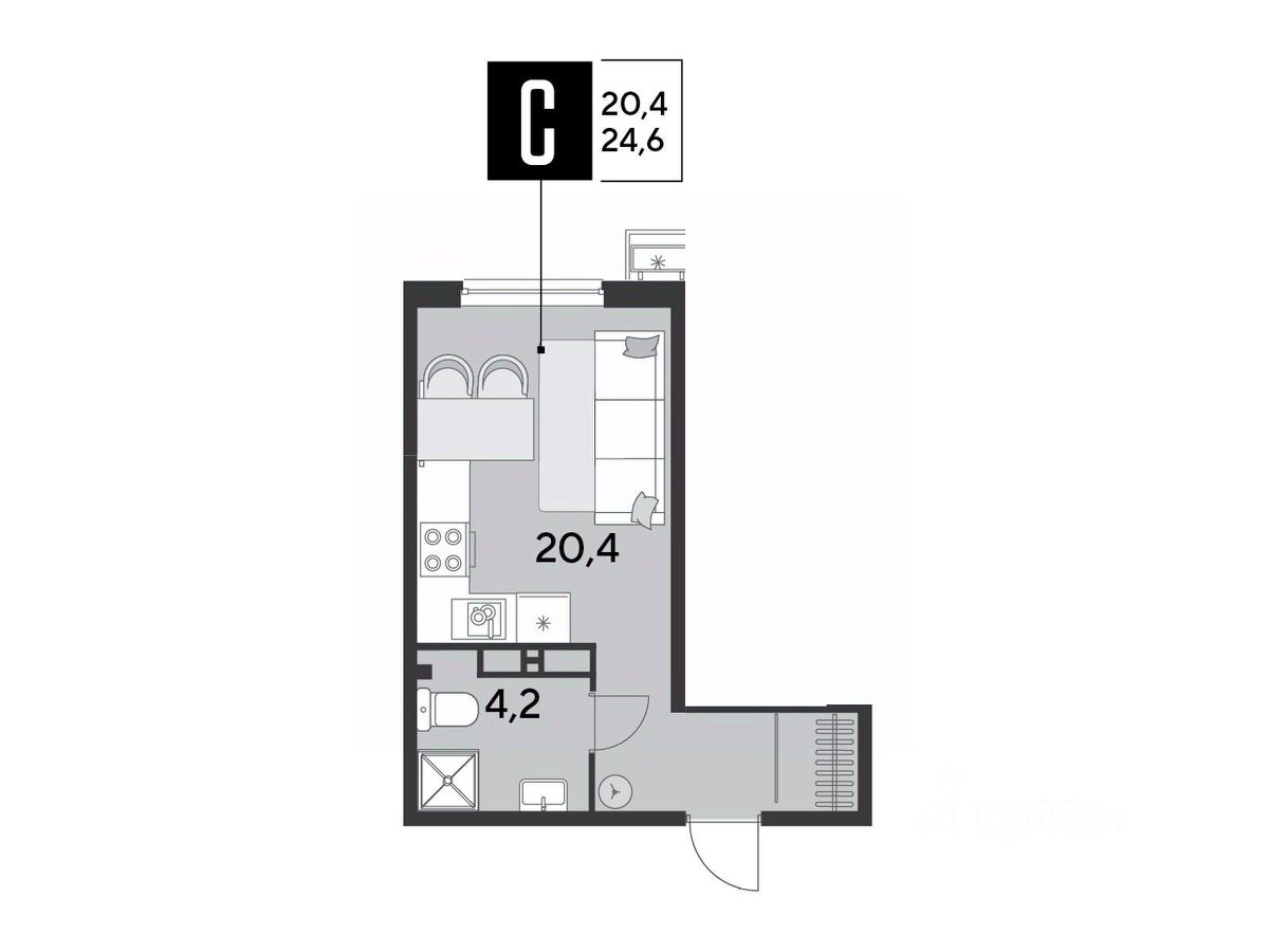 Срок сдачи: 2 кв. 2026, общей площадью 24.6 кв.м., на 18 этаже.