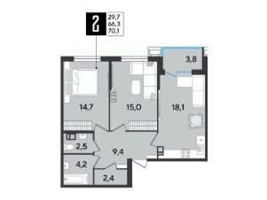 Срок сдачи: 2 кв. 2026, общей площадью 70.1 кв.м., на 4 этаже.