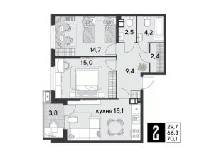 Срок сдачи: 2 кв. 2026, общей площадью 70.1 кв.м., на 4 этаже.