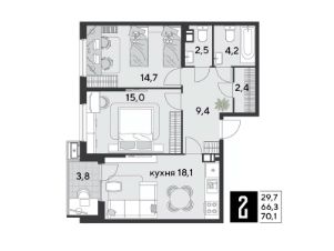 Срок сдачи: 2 кв. 2026, общей площадью 70.1 кв.м., на 7 этаже.