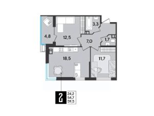 Срок сдачи: 2 кв. 2026, общей площадью 59.5 кв.м., на 7 этаже.